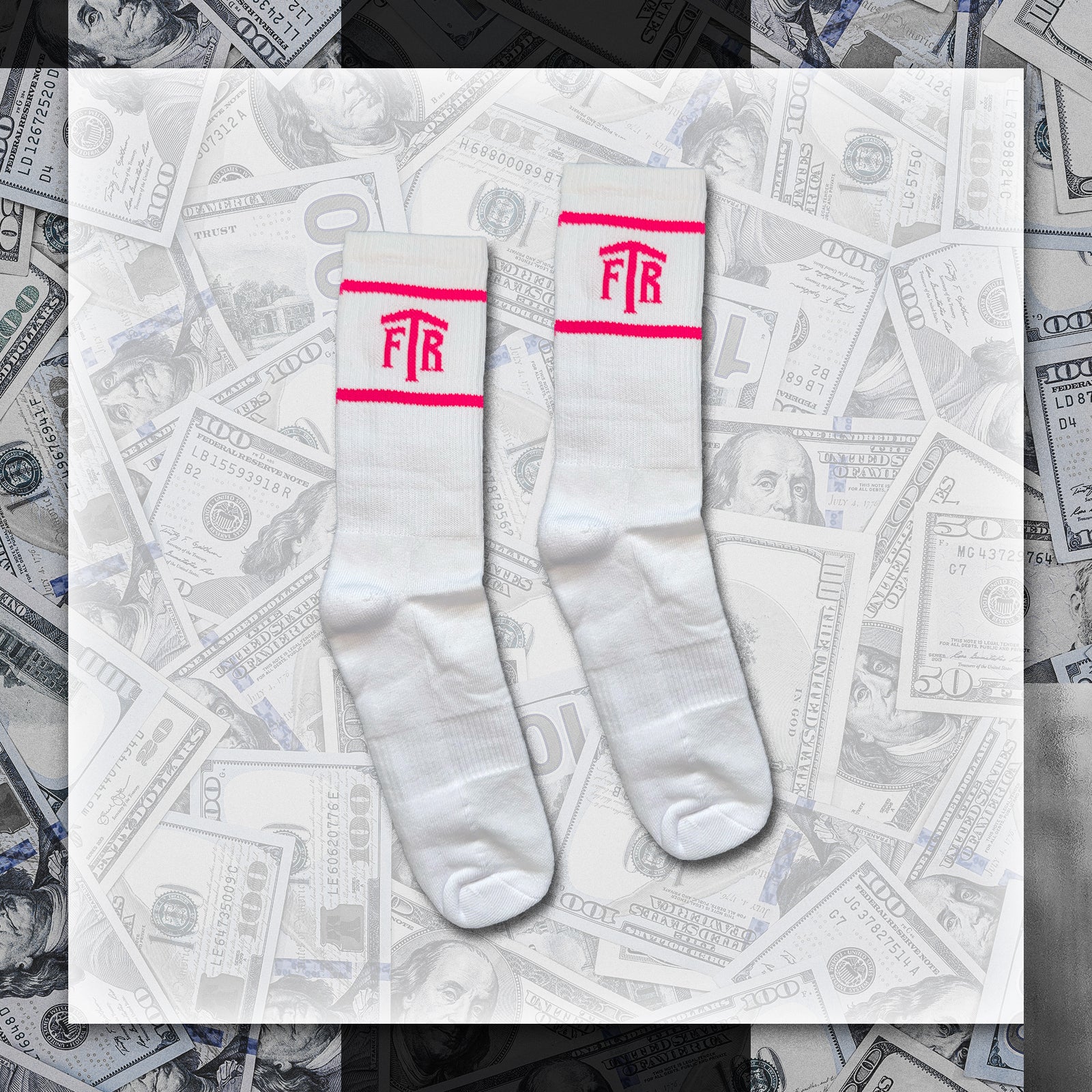 FTR LOGO WHITE CREW SOCKS (PINK)